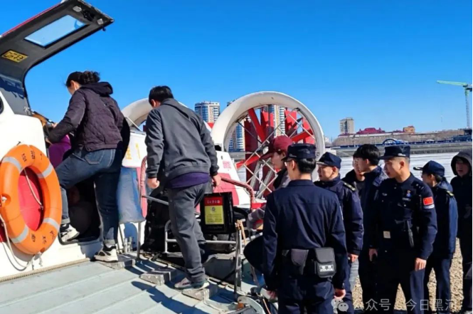 據(jù)悉,自1992年4月17日氣墊船運(yùn)輸首航以來,已有33年的歷史。氣墊船是兩國界江春秋兩季流冰期安全性最強(qiáng)、速度最快、頻次最高的交通運(yùn)輸工具,有效填補(bǔ)了流冰期運(yùn)輸?shù)目瞻?,乘客僅需2分鐘乘坐時(shí)間即可到達(dá)口岸碼頭。